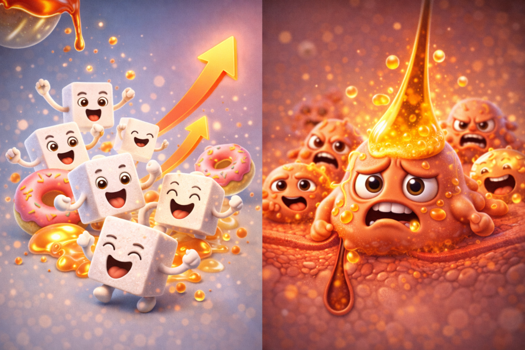 น้ำตาลพุ่ง → ต่อมไขมันทำงานมากขึ้น